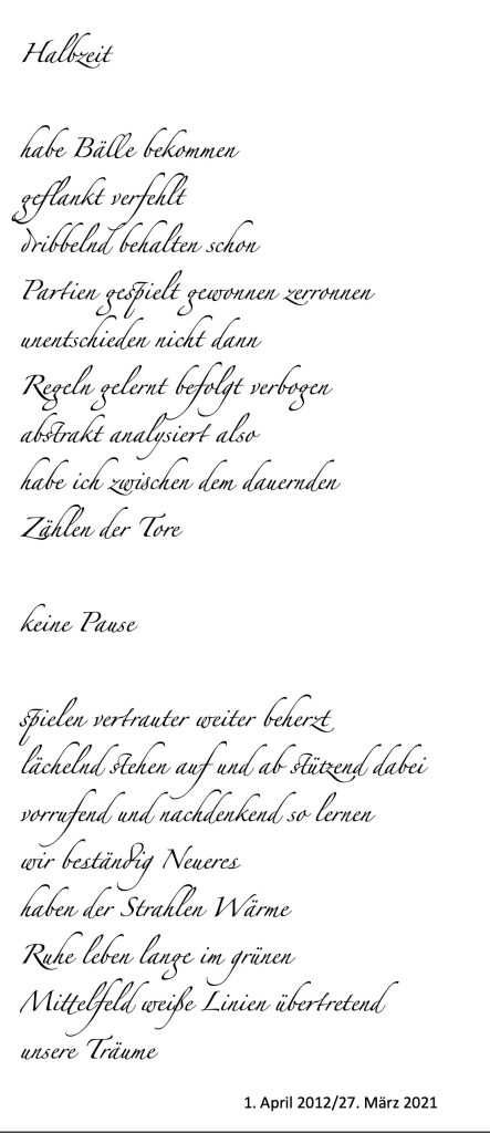 I grew up in East Germany. So, with the German language. Over the years and not only at that time, I have written some texts in German. I might translate this one into English later. Although I have translated a few poems into English (or into German, for that matter), I have not yet translated one of my own texts, he added hastily.